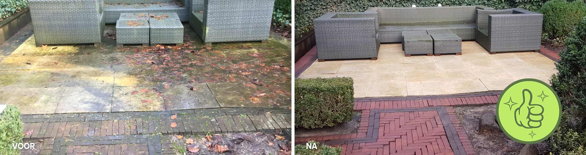 “Oooooh... Dus zo zagen onze tuintegels er uit. Wat een verschil zeg!”